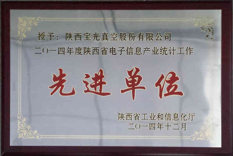 12月12日,陜西省工業(yè)和信息化廳統(tǒng)計工作會議在西安召開。會議通報了我省電子信息產業(yè)發(fā)展情況,安排布置了2014年統(tǒng)計年報及2015年定期報表,并對2014年度統(tǒng)計工作進行了總結。2014年統(tǒng)計考評工作針對各單位統(tǒng)計報表報送情況、單位內部統(tǒng)計管理規(guī)范情況及主管領導對統(tǒng)計工作重視情況等方面,評選出2014年度陜西省電子信息制造業(yè)統(tǒng)計工作先進單位及先進個人,并通報表揚。寶光股份再次獲得“2014年度陜西省電子信息制造業(yè)統(tǒng)計工作先進單位”, 寶光股份2名員工被評為“陜西省電子信息制造業(yè)統(tǒng)計工作先進個人”。
