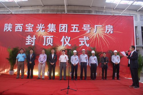 5月29日上午8:30時,建設(shè)中的5#廠房施工現(xiàn)場,樂曲激昂,彩旗飄揚,寶光集團5#廠房封頂儀式隆重舉行。一大早,寶光集團領(lǐng)導(dǎo)一行帶著慰問品及消暑品,對施工單位及員工的辛勤付出表示感謝和慰問。5#廠房,去年11月5日開始施工,經(jīng)過工程項目組、施工單位及監(jiān)理單位和廣大員工7個多月的艱苦奮戰(zhàn),順利封頂。西電集團黨委常委佟紹成、寶光集團公司領(lǐng)導(dǎo)李軍望、李明鑫、付宗喜,及股份公司副總經(jīng)理謝洪濤、陜安分公司副總經(jīng)理秦東升、陜西中安工程管理咨詢有限公司董事長史建斌,工程項目組、建設(shè)單位、施工單位、監(jiān)理單位等有關(guān)人員參加了封頂儀式。