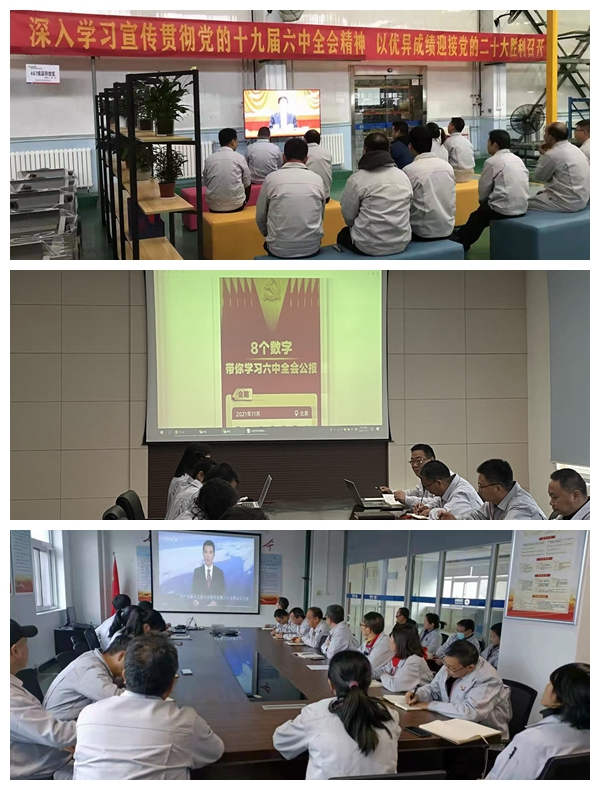 公司黨委要求各黨支部緊抓契機(jī)、提高認(rèn)識,迅速行動起來,進(jìn)一步增強(qiáng)學(xué)習(xí)貫徹十九屆六中全會精神的自覺性和主動性,以迅速及時(shí)、扎實(shí)有效的舉措,推動形成學(xué)習(xí)貫徹黨的十九屆六中全會精神的熱潮;要求黨委班子成員、各黨支部書記以及及黨委部門負(fù)責(zé)人要帶頭學(xué)習(xí)、并撰寫學(xué)習(xí)心得;要求各黨支部精心組織,通過三會一課、班前會、晨會等多種形式,深入學(xué)習(xí)貫徹黨的十九屆六中全會精神會議,推動全會精神進(jìn)車間、進(jìn)班組、進(jìn)基層,領(lǐng)會全會精神、激發(fā)干事創(chuàng)業(yè)激情。