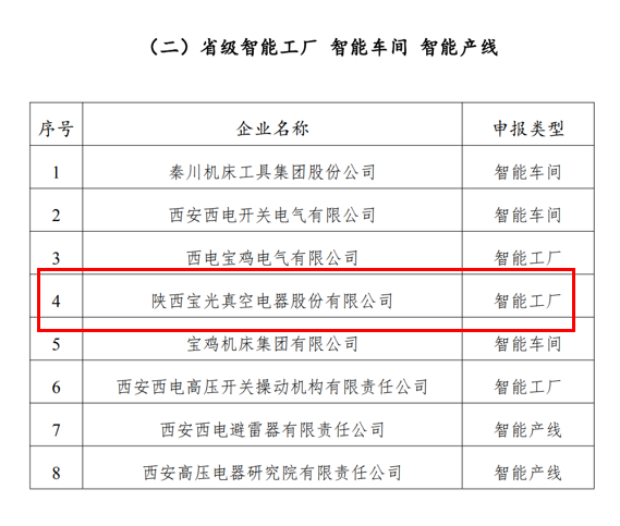 3月14日,陜西省工信廳裝備工業(yè)處發(fā)布2021年度省級智能制造試點示范企業(yè)及省級智能工廠名單,寶光股份獲評“2021年度省級智能工廠”。